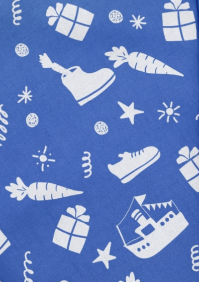 Vier de gezelligste tijd van het jaar met deze blauwe Sinterklaas scrunchie! De print met stoombootjes, cadeautjes, worteltjes en schoentjes brengt meteen de echte Sinterklaassfeer tot leven.